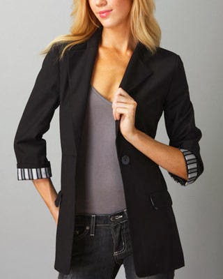 3. Black blazer: Blazers used to only be for men, but now you are more likely to see a woman sporting a jacket than a man. Blazers are also a dress up/dress down piece. Paired with leggings and heels, it becomes a dress up piece to a simple outfit but throw it on with a party dress and it helps tone down that "way too dressy dress" so you fit right in.